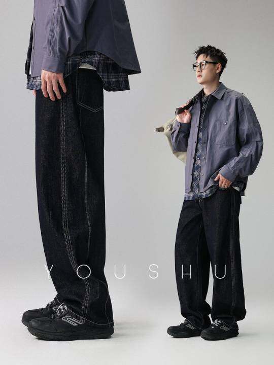 YOUSHU「原色诗纹」美式潮牌水洗覆古牛仔裤男秋季直筒宽松原牛