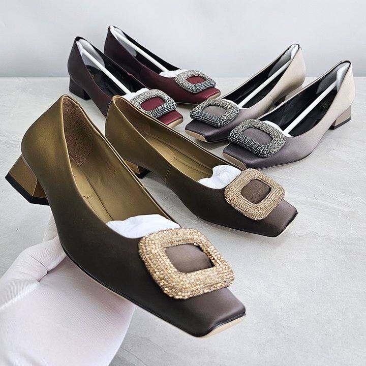 【已购】尾~少量~丝光牛皮+羊皮~轻奢水钻大方扣方头鞋女高级感粗跟单鞋新