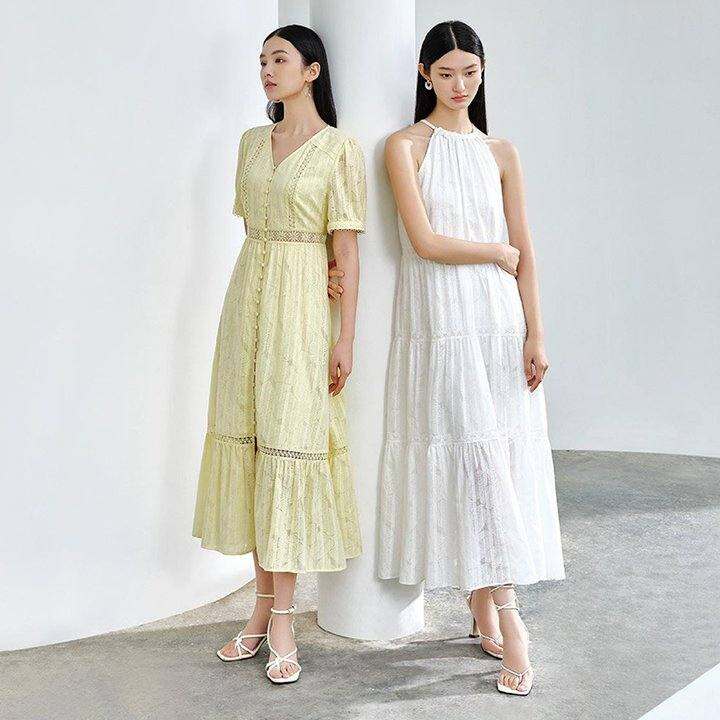 【已购】时尚露肩纯色系带连衣裙夏装2025新款女装品牌专柜正品