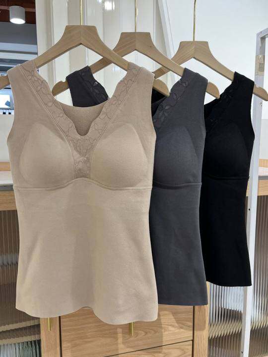古妃34090羊羔绒花边保暖背心带胸垫内搭免穿文胸无痕打底内衣女