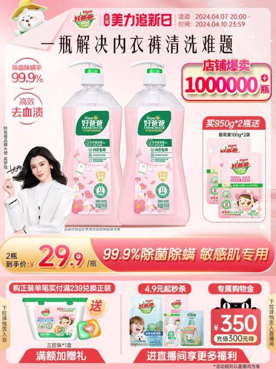 好爸爸洗衣液内衣内裤清洗液抑菌除菌去血渍手洗专用瓶装