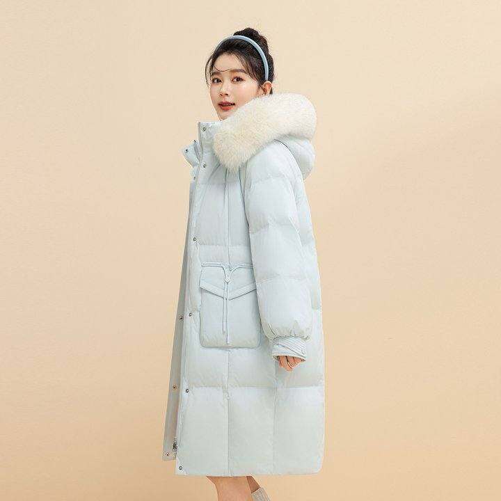 羽绒服女2023新款大毛领中长款连帽白鸭绒时尚过膝加厚冬爆款外套