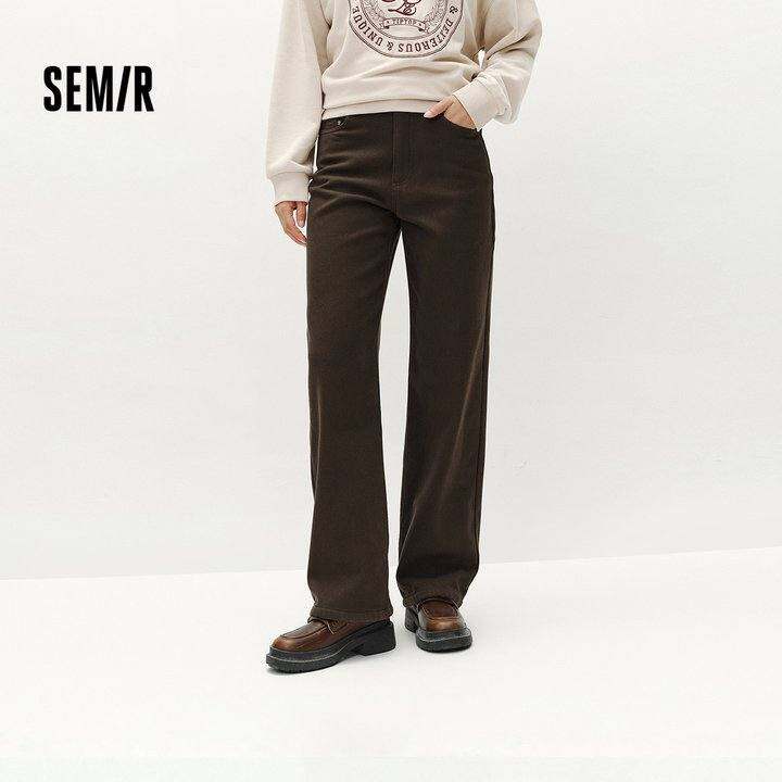 [商场同款]森马休闲长裤女2025冬季新款遮肉显瘦加绒阔腿裤宽松
