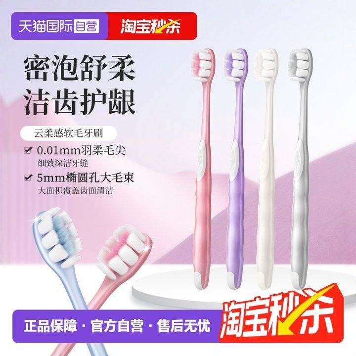 【自营】欧志姆韩国云柔软毛成人超软宽头家庭装清洁4支装牙刷