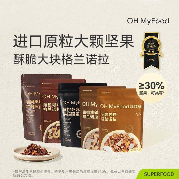 ohmyfood格兰诺拉榛果黑巧克力可可烘焙燕麦片坚果酸奶碗代餐即食