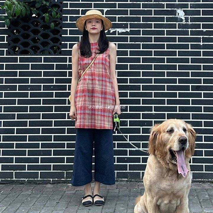 复古韩系慵懒风圆领背心连衣裙女夏季设计感小众宽松无袖格纹短裙