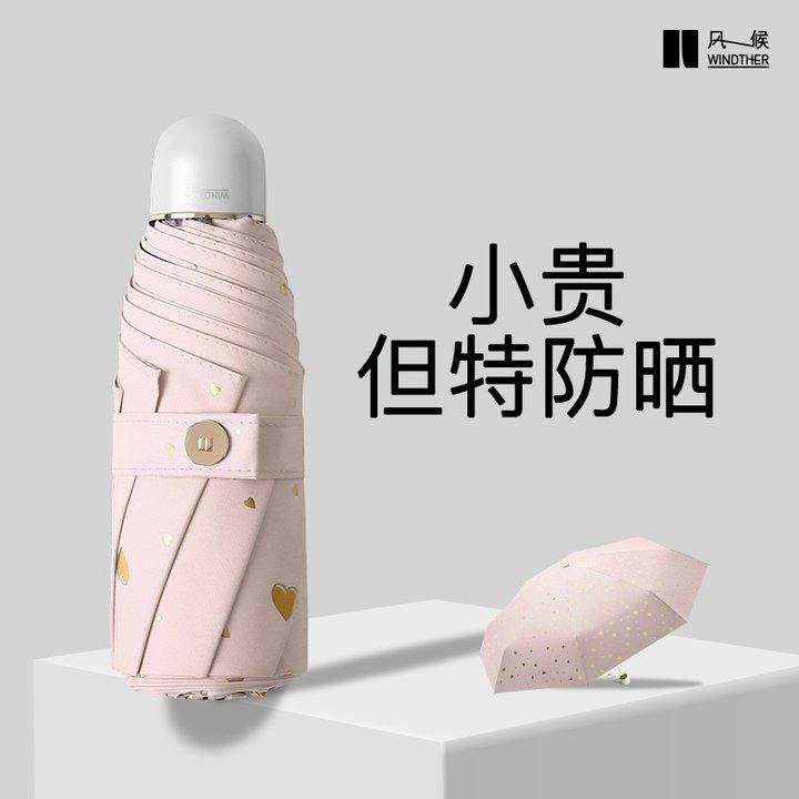 风候太阳伞小巧便携胶囊遮阳防晒防紫外线晴雨烫金女折叠黑胶五折