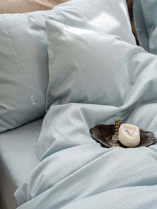100支全棉四件套 轻奢提花高级感北欧简约纯棉长绒棉绿色床上用品