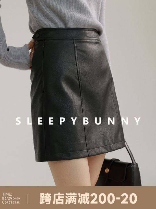 瞌睡兔 黑色高腰显瘦a字短裙pu皮热辣包臀半身裙2024春秋时尚皮裙