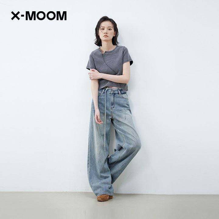 【商场同款】X--MOOM2025夏季新款设计感不对称领修身短袖T恤女