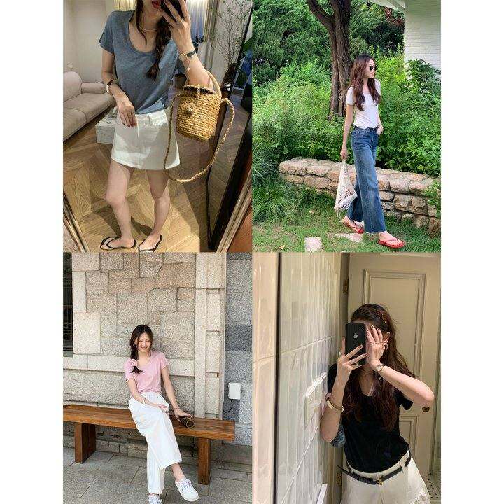 iiiipupu25ss 天丝羊毛大u领慵懒不紧身短袖T恤