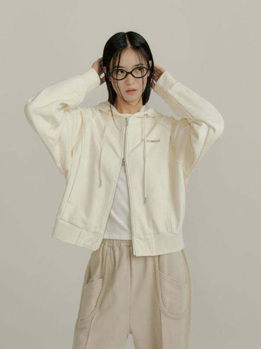 XTHEMCAPS韩国设计师CITY 纯色小字母logo拉炼连帽宽松休闲卫衣