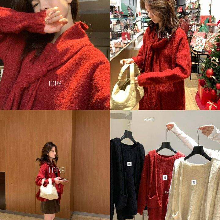 刚到手热乎的红色毛衣 好喜欢 颜色好看很显白 很适合圣诞节的时候穿 那个搭配的围巾帽子很特别好看 推荐!就是不知道会不会起球