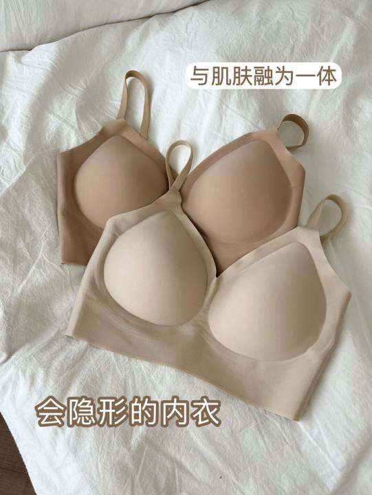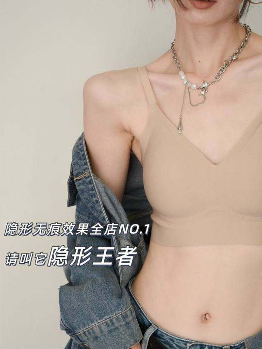 无痕隐形王者极简深肤色内衣女夏天薄款大胸显小胸文胸一片式背心