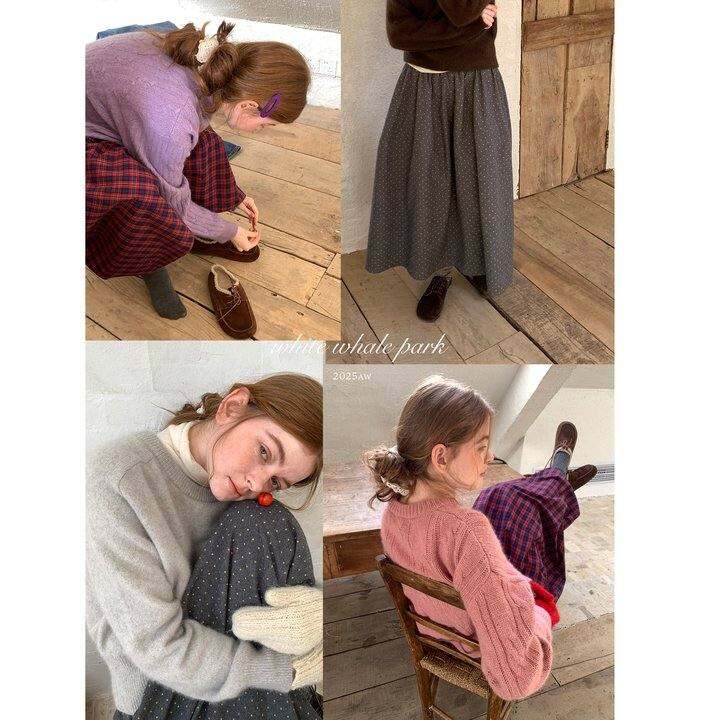 白鲸公园 磨毛黄灰波点/藏青红格 A字半裙长款2025冬大摆量半身裙