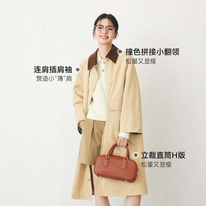 【爆款升级】诗凡黎灯芯绒撞色领风衣2024秋新款流行小个子外套女