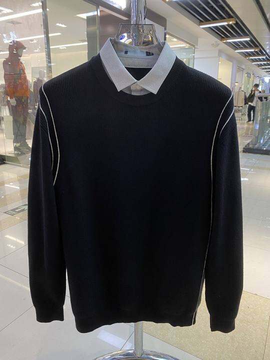 【海家】假两件毛衣男简约时尚显瘦撞色打底衫亲肤柔软套头针织衫
