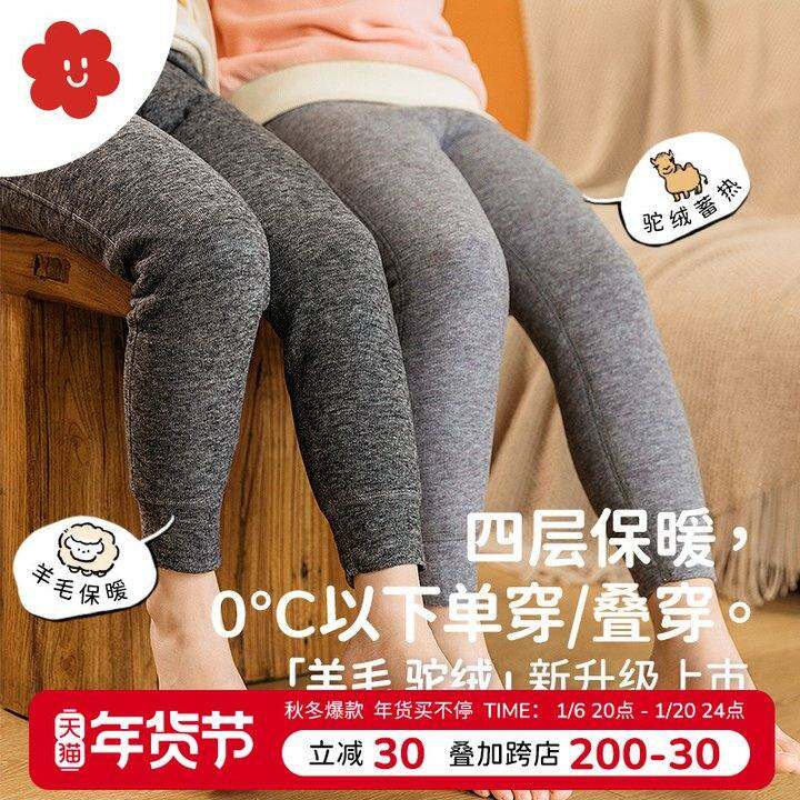 舍予良仓四层保暖裤儿童棉裤冬季男童加绒裤女童宝宝羊毛打底裤子
