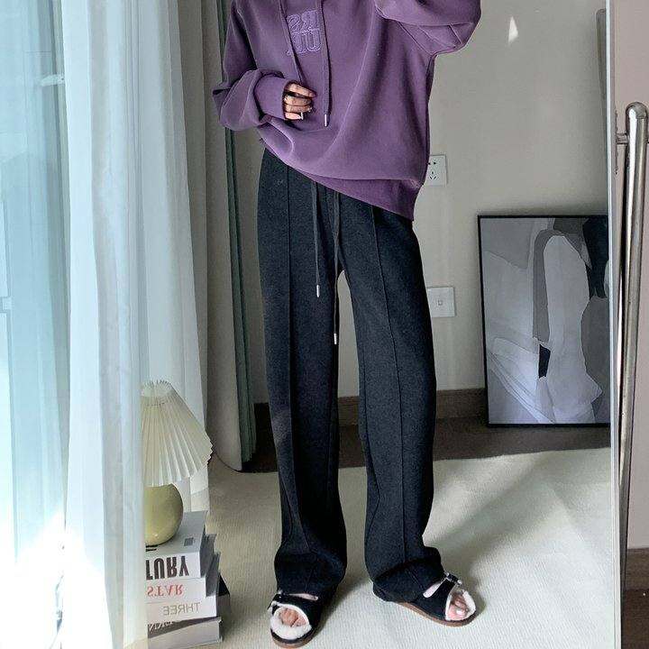 灰色羊毛呢直筒裤女秋冬新款加绒窄版垂感显瘦西装休闲阔腿长裤厚