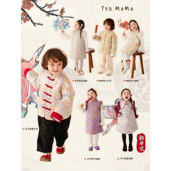 豆几妈【漫棠辞雪】儿童年服女童拼接新中式旗袍裙国风男童拜年服