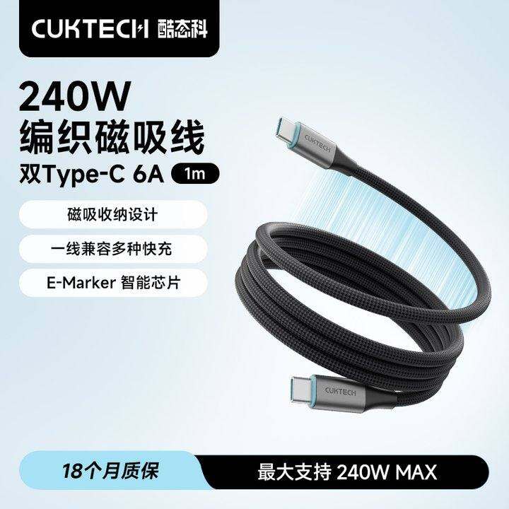 CUKTECH酷态科C-C磁吸编织数据线双Type-c笔记本快充线适用于iPhone16 Pro Max充电器线/15/ipad/MacBook