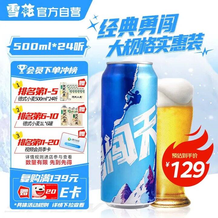 【自营】雪花啤酒 勇闯天涯500ml 24罐