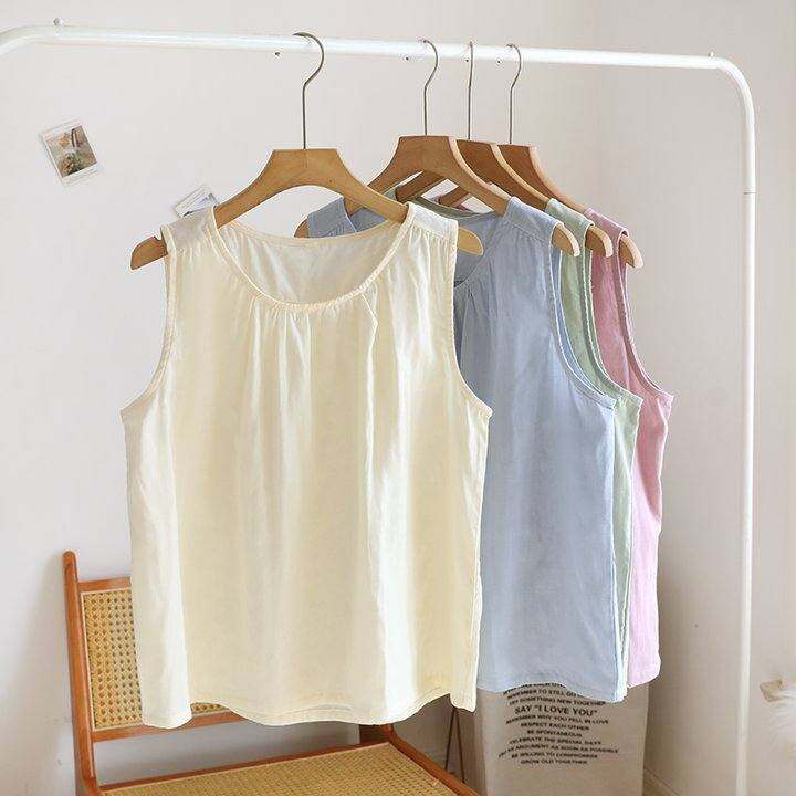 文艺新款女士纯棉纱布凉爽背心短裤薄款九分阔腿裤外穿宽松家居服