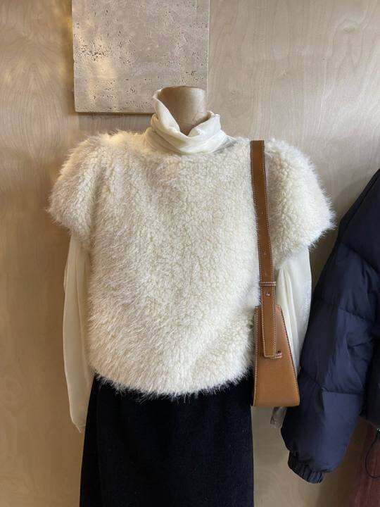 秋冬纯色全新优雅时尚减龄韩国东大门百搭休闲修身长毛绒女士上衣