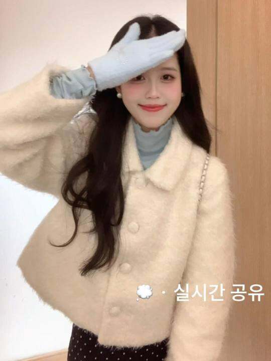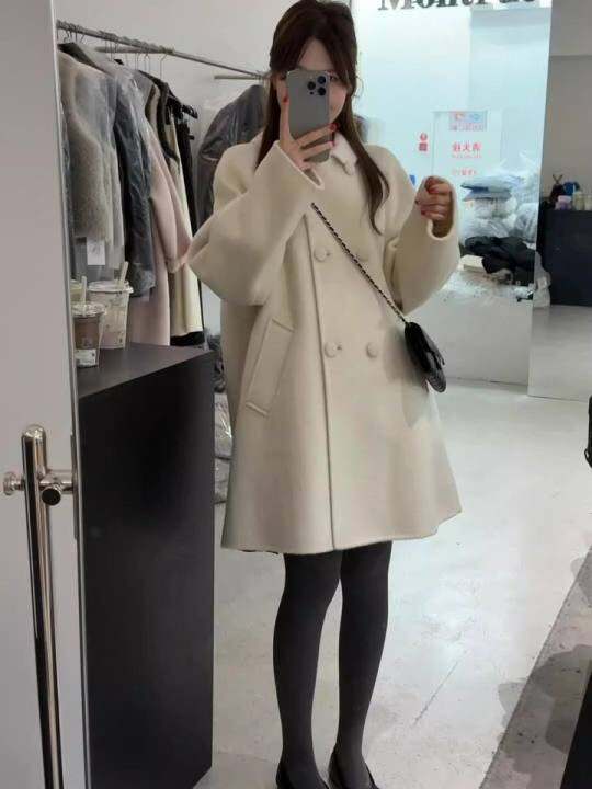 高级感白色大衣女2025新款毛呢外套韩系甜美覆古小个子独特超好看