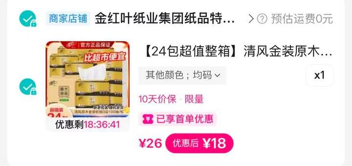 18 清风原木抽纸24包