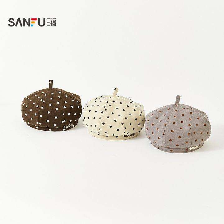三福简单波点八片贝雷帽 复古文艺气质感显脸小画家帽847831