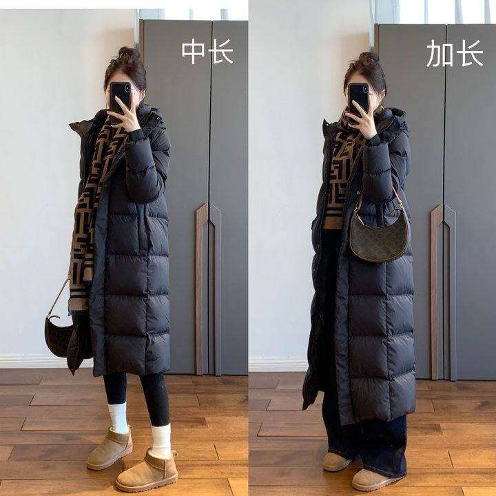 THEWOW 95%白鸭绒 蓬松抗寒分隔充绒四层防钻线长款连帽羽绒服冬