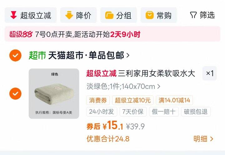 2.领99-20🧧,然后再加购3件