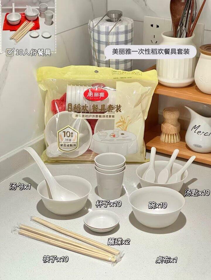 他家的一次性稻欢餐具套装可真要夸一夸!省去了洗碗的麻烦,用完直接一兜扔掉超省事✌️质量也是嘎嘎厚实,质感很好边缘光滑没有毛刺,不担心割伤使用很安心,防烫隔热,杯子也很硬挺不会塌!