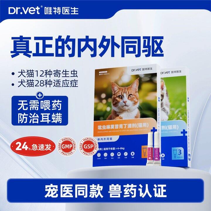 唯特医生体内外驱虫滴剂3支