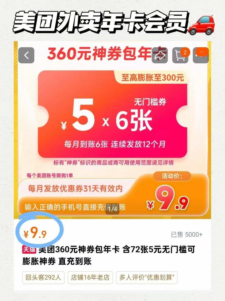 美团外卖年卡会员💥9.9