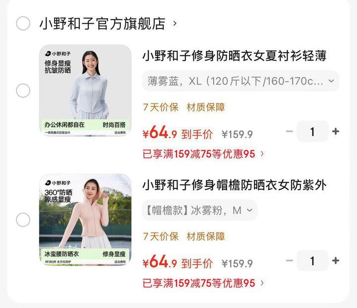 小野和子修身防晒衣 64.9亓