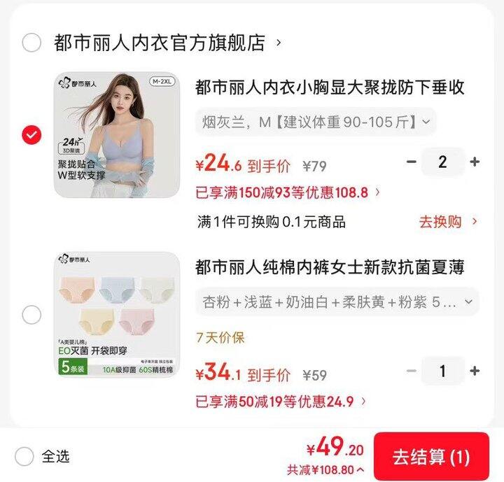 ❷聚拢无痕内'衣'2件💰49