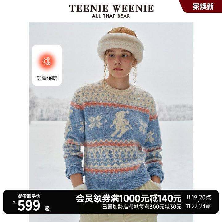 TeenieWeenie小熊毛衣2024年冬季新款费尔岛提花羊毛混纺针织衫女