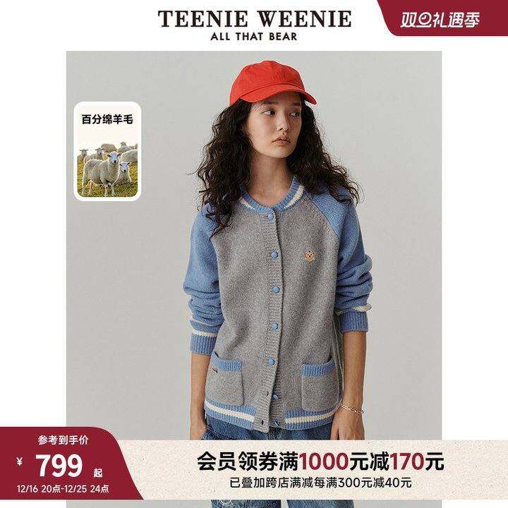 【绵羊毛】Teenie Weenie小熊女装毛针织开衫2024冬装新款外套