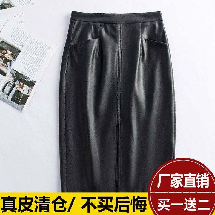 真皮皮裙半身裙女2023新款绵羊皮百搭显瘦气质高腰中长款包臀裙纯