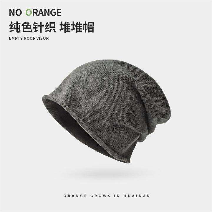 鞠婧祎同款针织大头围堆堆帽女秋冬月子帽灰色毛线帽子男冷帽美式