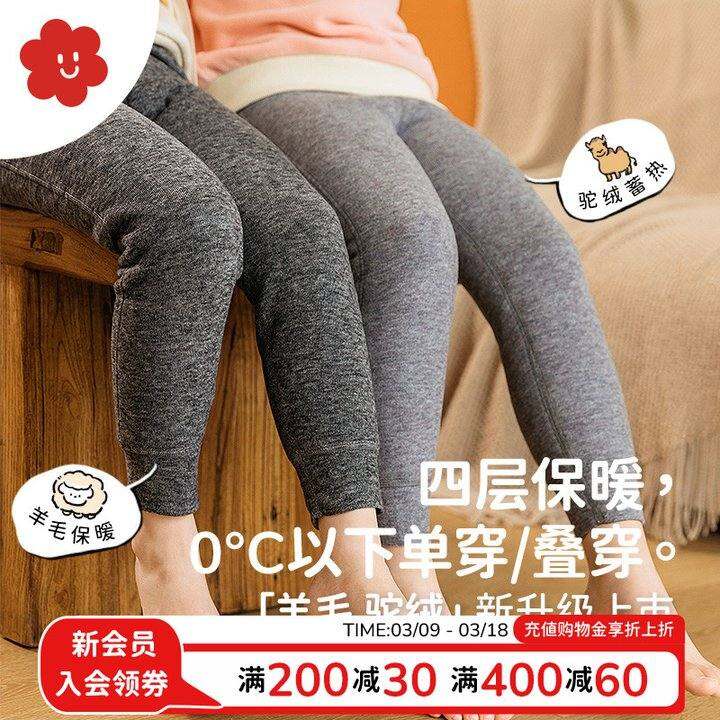 舍予良仓四层保暖裤儿童棉裤冬季男童加绒裤女童宝宝羊毛打底裤子
