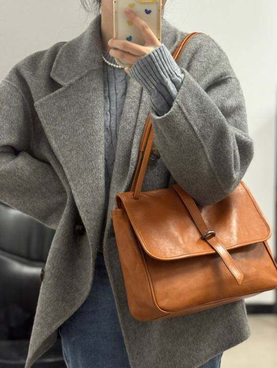(非推荐链接)裘真植鞣头层牛皮包包小众复古斜挎托特包通勤大容量真皮邮差包女