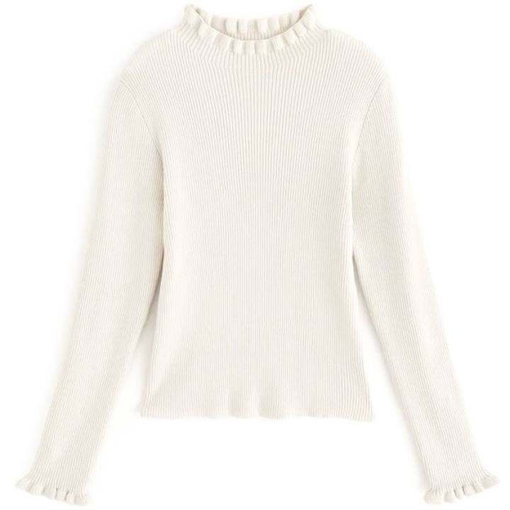 日单新品女秋冬口螺纹高弹木耳边纯色简约中领修身套头针织打底衫
