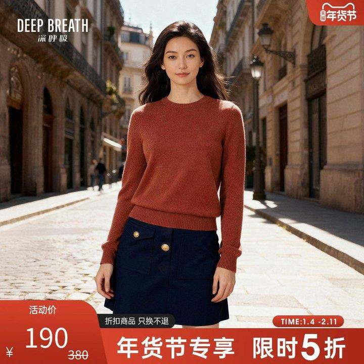 【五折】DEEP BREATH深呼吸女装红色100%羊绒毛针织衫上衣A300341