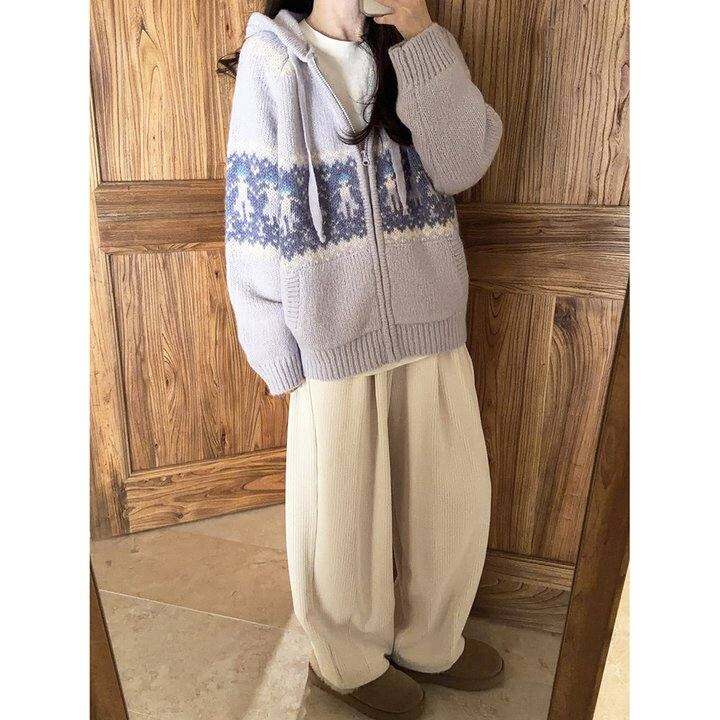 *处理 复古粗针费尔岛 手拉手 插肩袖 宽松 连帽 毛衣外套 K