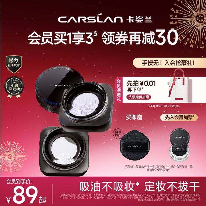 卡姿兰黑磁散粉蜜粉紫色控油持久定妆粉饼哑光提亮防水气垫粉底液