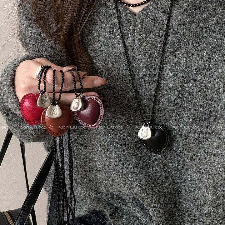 皮质爱心项链长款挂脖配饰女毛衣链轻奢小众高级感卫衣链2025新款