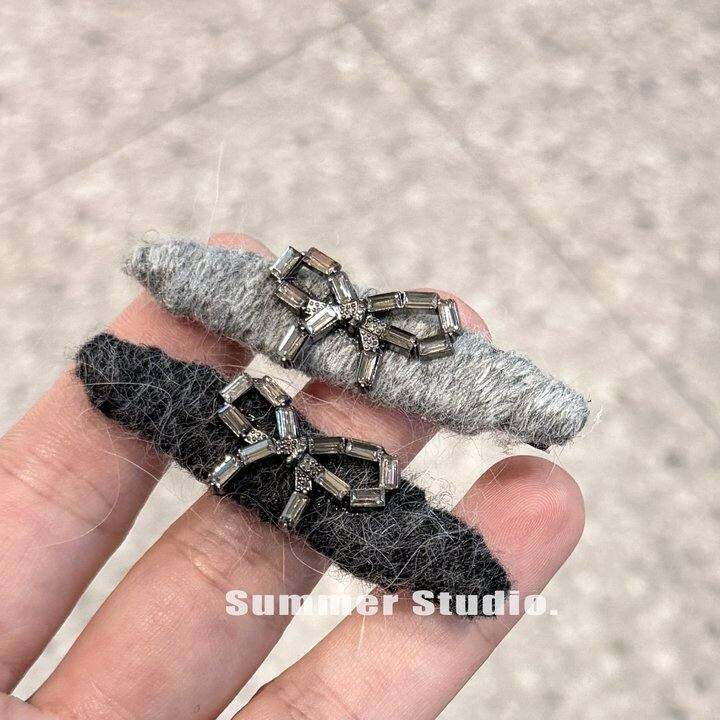 轻奢闪钻水钻蝴蝶结毛线鸭嘴夹一字夹精致感前额刘海夹侧边夹发夹